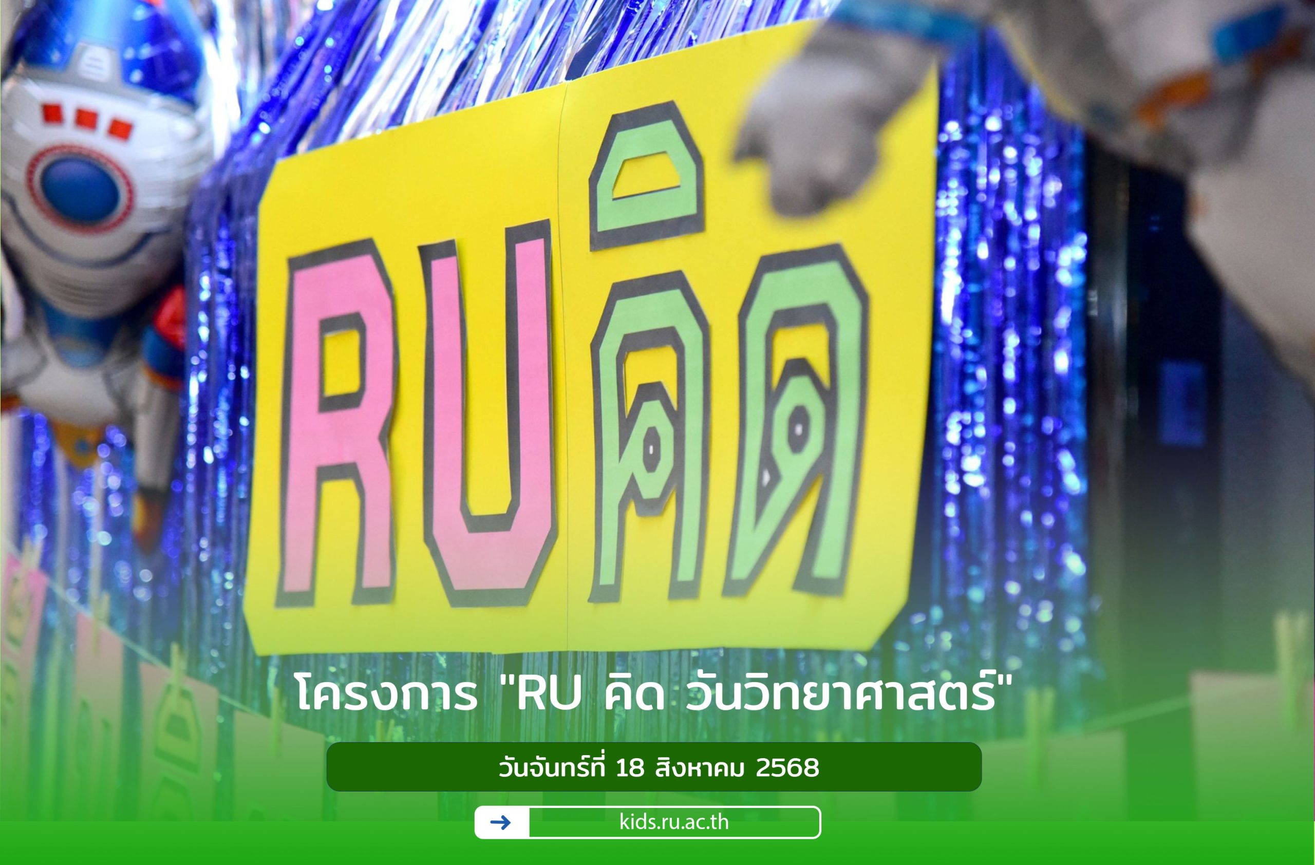 ปลุกความเป็นนักวิทย์ในใจหนู กับโครงการ “RU คิด วันวิทยาศาสตร์” ในวันจันทร์ที่ 18 สิงหาคม 2568