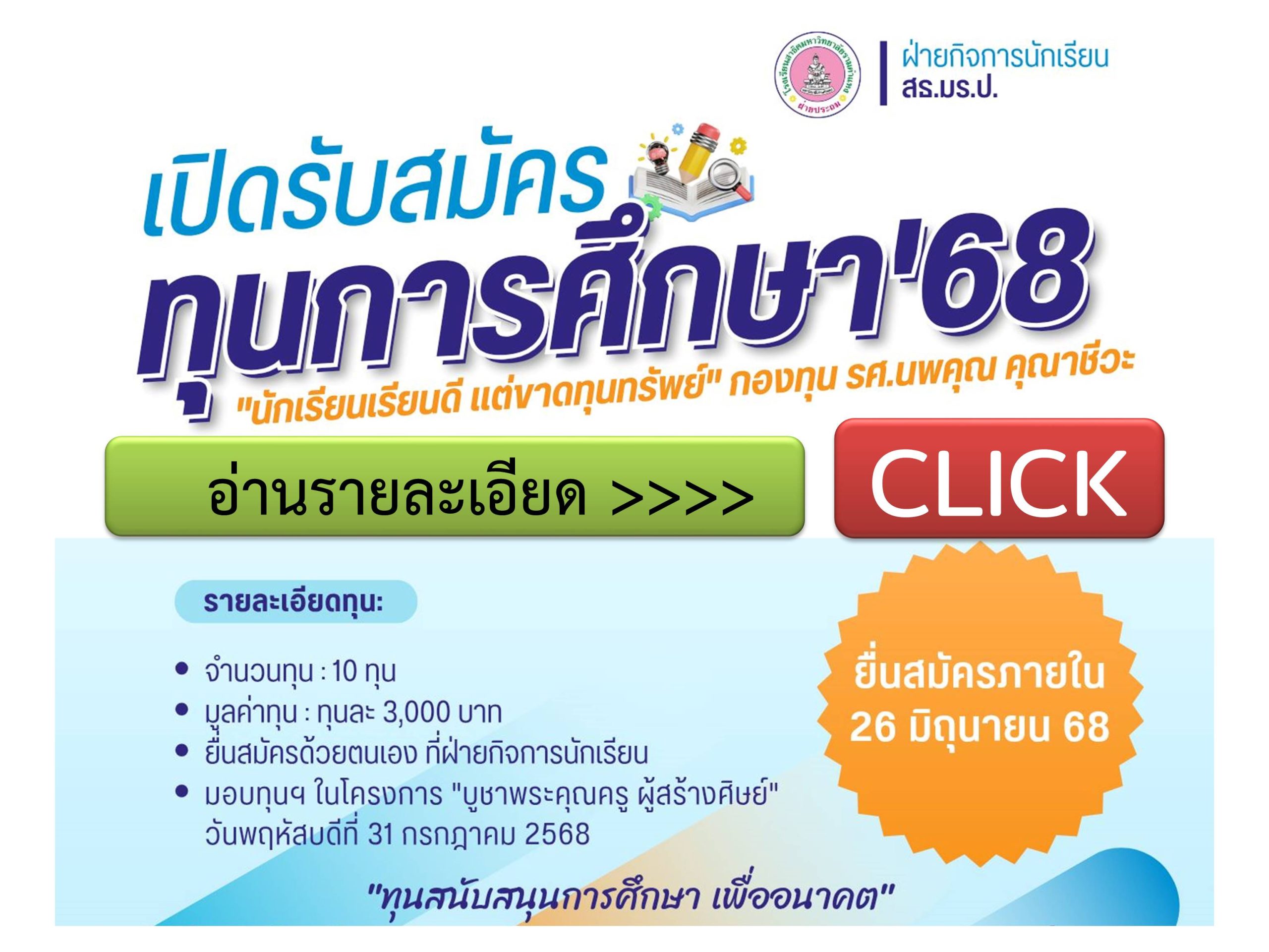 ประชาสัมพันธ์เปิดรับสมัครนักเรียนเพื่อรับทุนการศึกษา ปีการศึกษา 2568