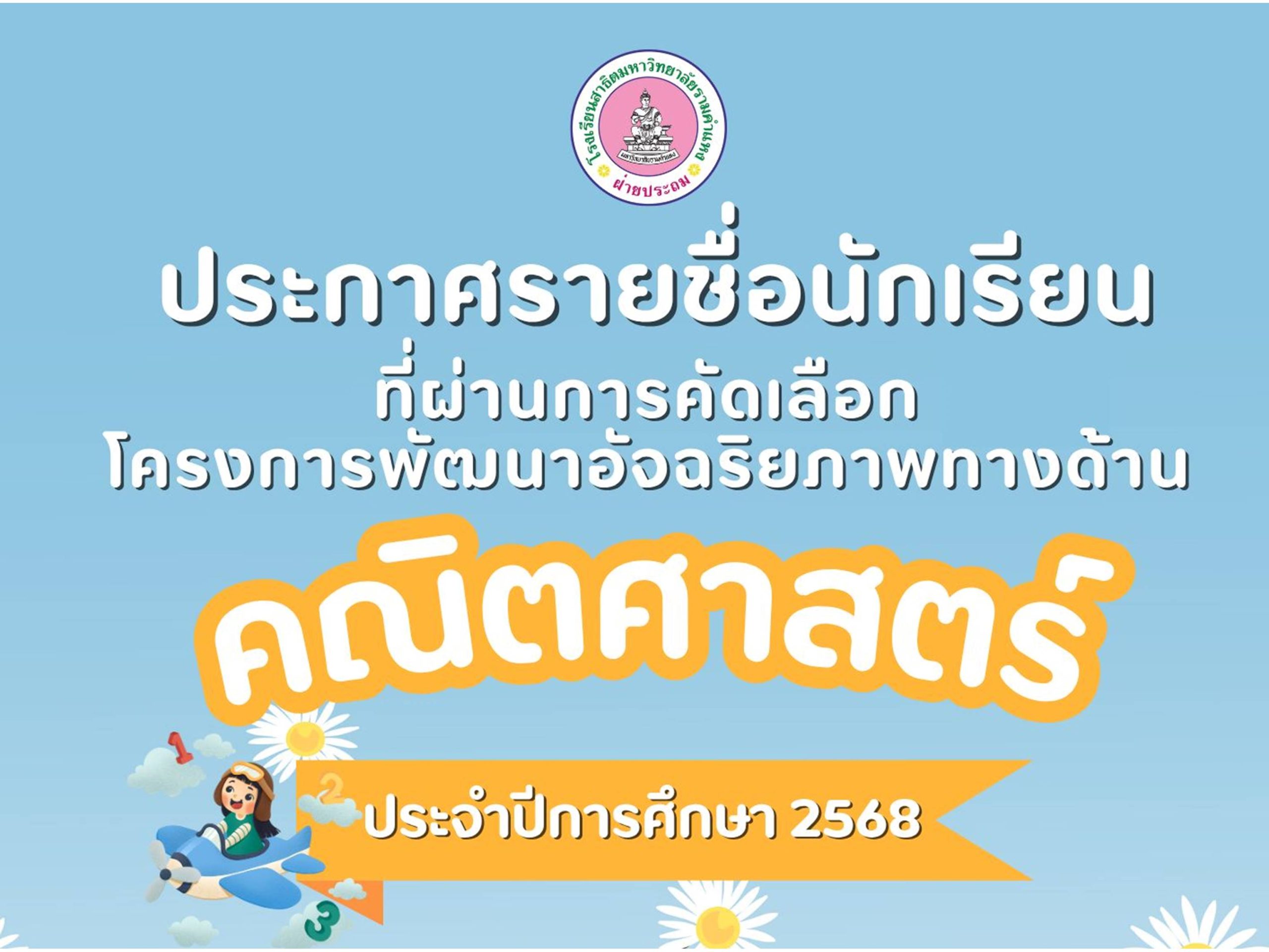 ประกาศรายชื่อนักเรียนที่ผ่านการคัดเลือกโครงการพัฒนาอัจฉริยภาพทางด้านคณิตศาสตร์
