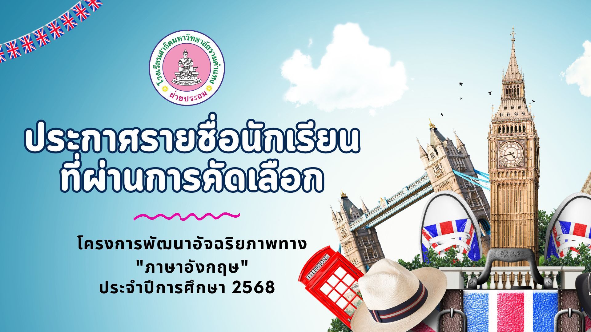 ประกาศรายชื่อผู้ผ่านการคัดเลือกเข้าร่วมโครงการพัฒนาอัจฉริยภาพทางภาษาอังกฤษ
