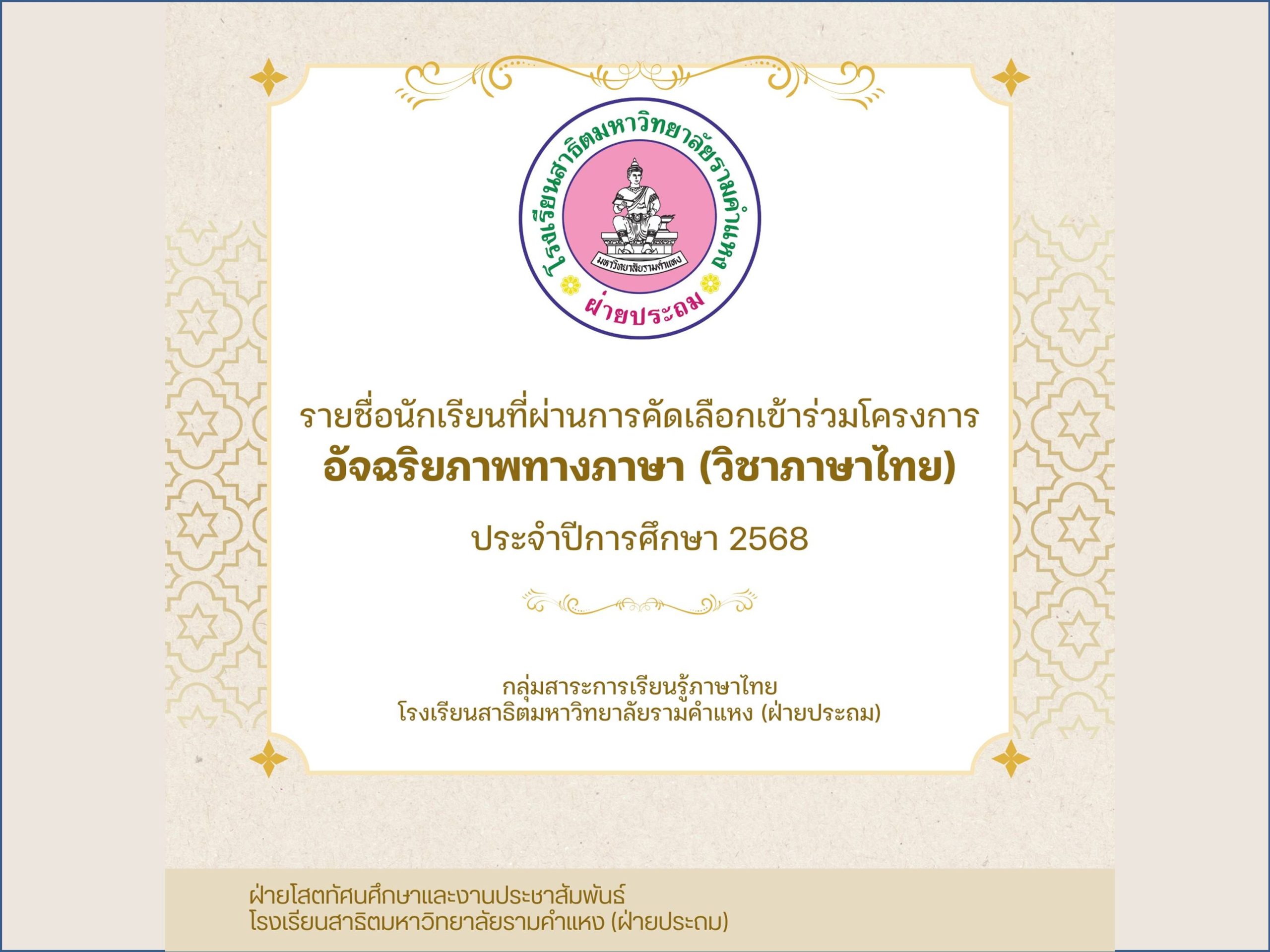 ประกาศรายชื่อผู้ผ่านเข้าร่วมโครงการอัจฉริยภาพทางภาษา (วิชาภาษาไทย)