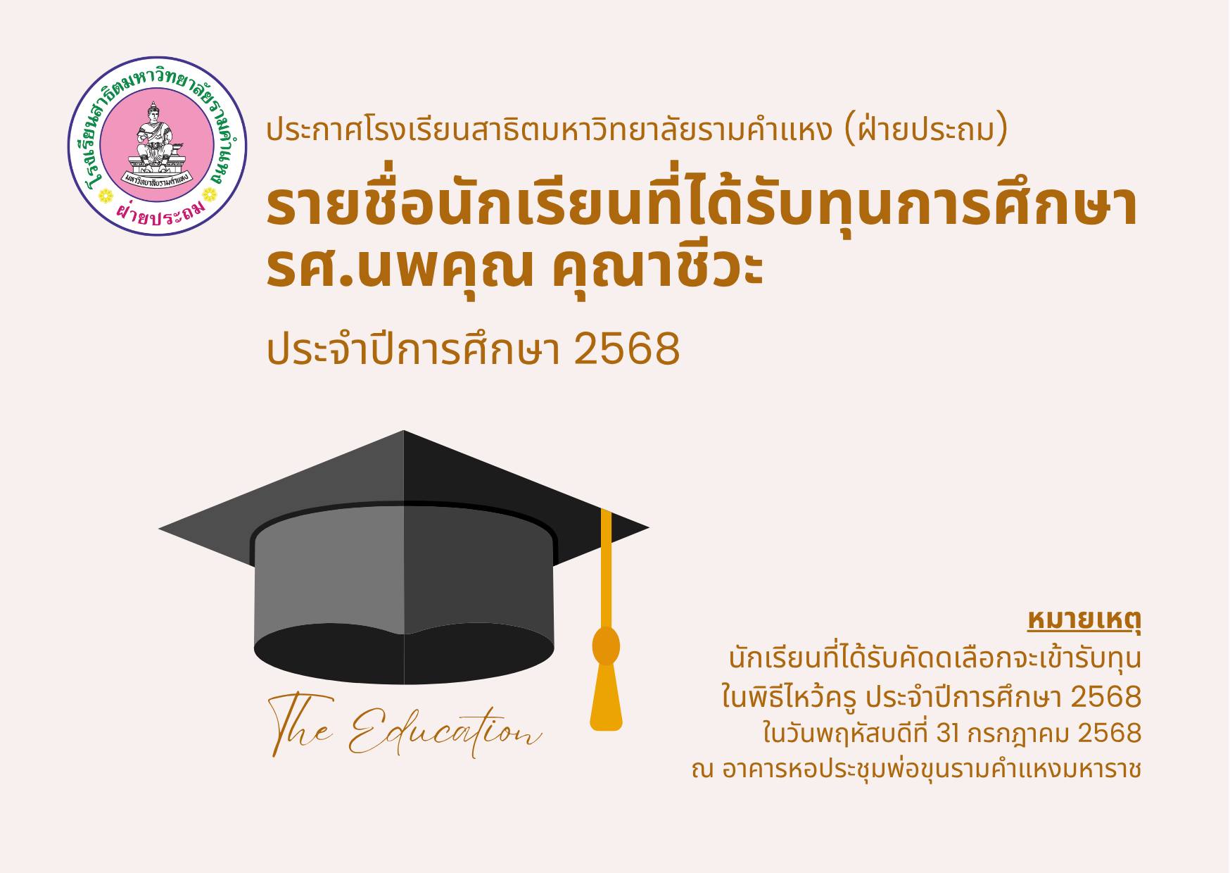 ประกาศ รายชื่อนักเรียนที่ได้รับทุนการศึกษา ปีการศึกษา 2568