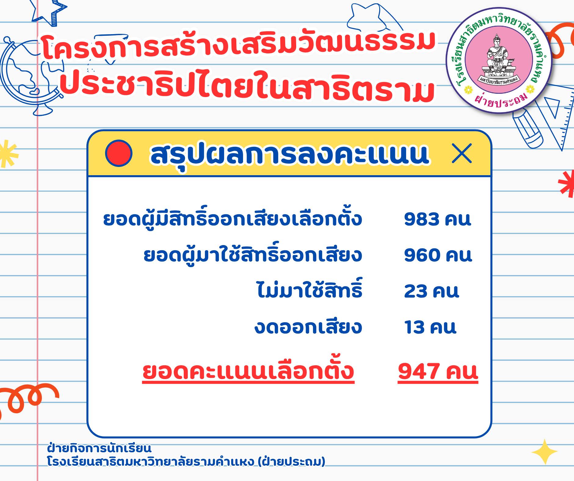 ในโครงการสร้างเสริมวัฒนธรรมประชาธิปไตยในสาธิตราม โดยฝ่ายกิจการนักเรียน วันพฤหัสบดีที่ 3 กรกฎาคม 2568 ณ โรงเรียนสาธิตมหาวิทยาลัยรามคำแหง (ฝ่ายประถม)