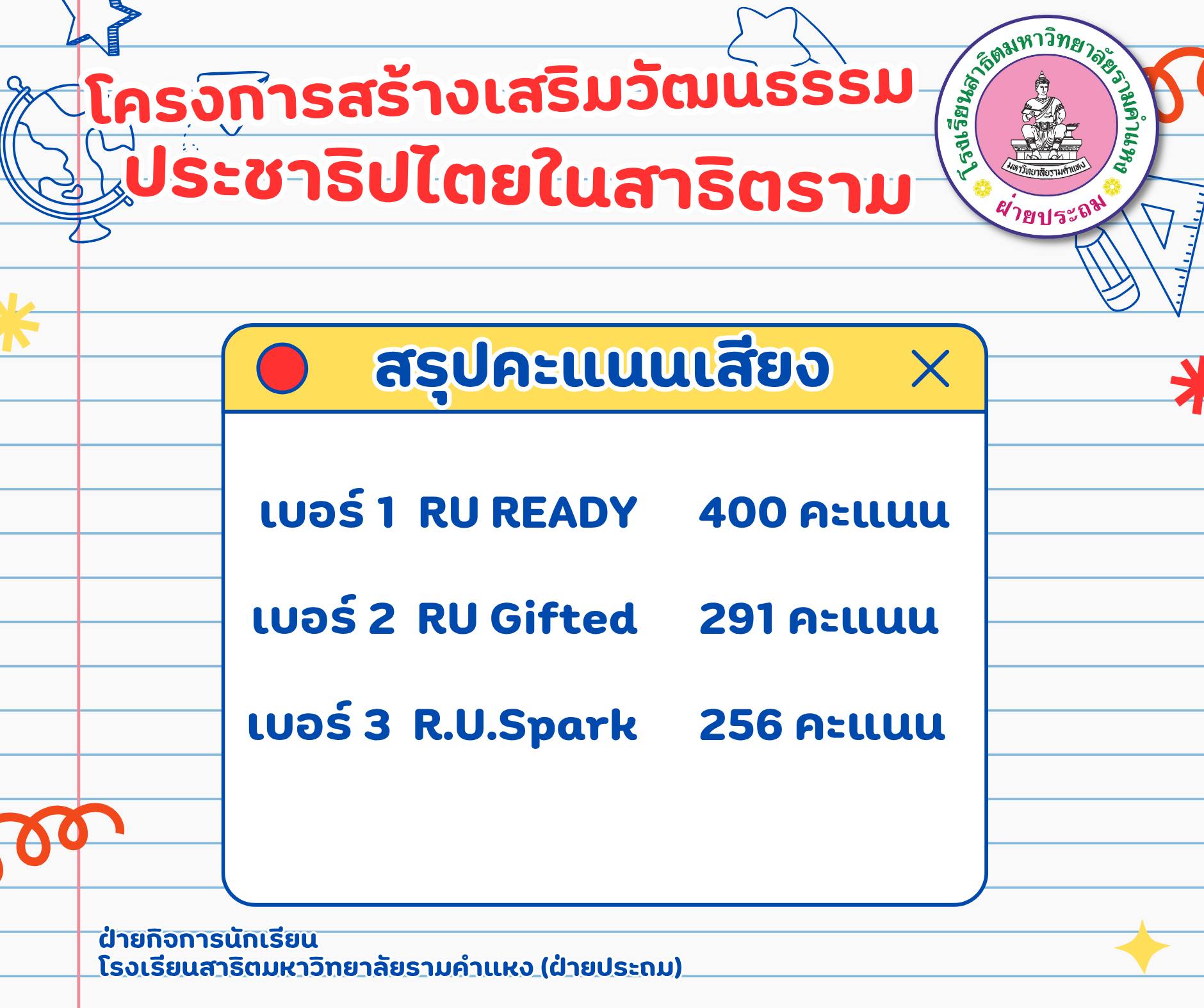 ประธานนักเรียน ประจำปีการศึกษา 2568 ด.ญ.ณัฐณิชา บุญสิน จากทีม RU READY