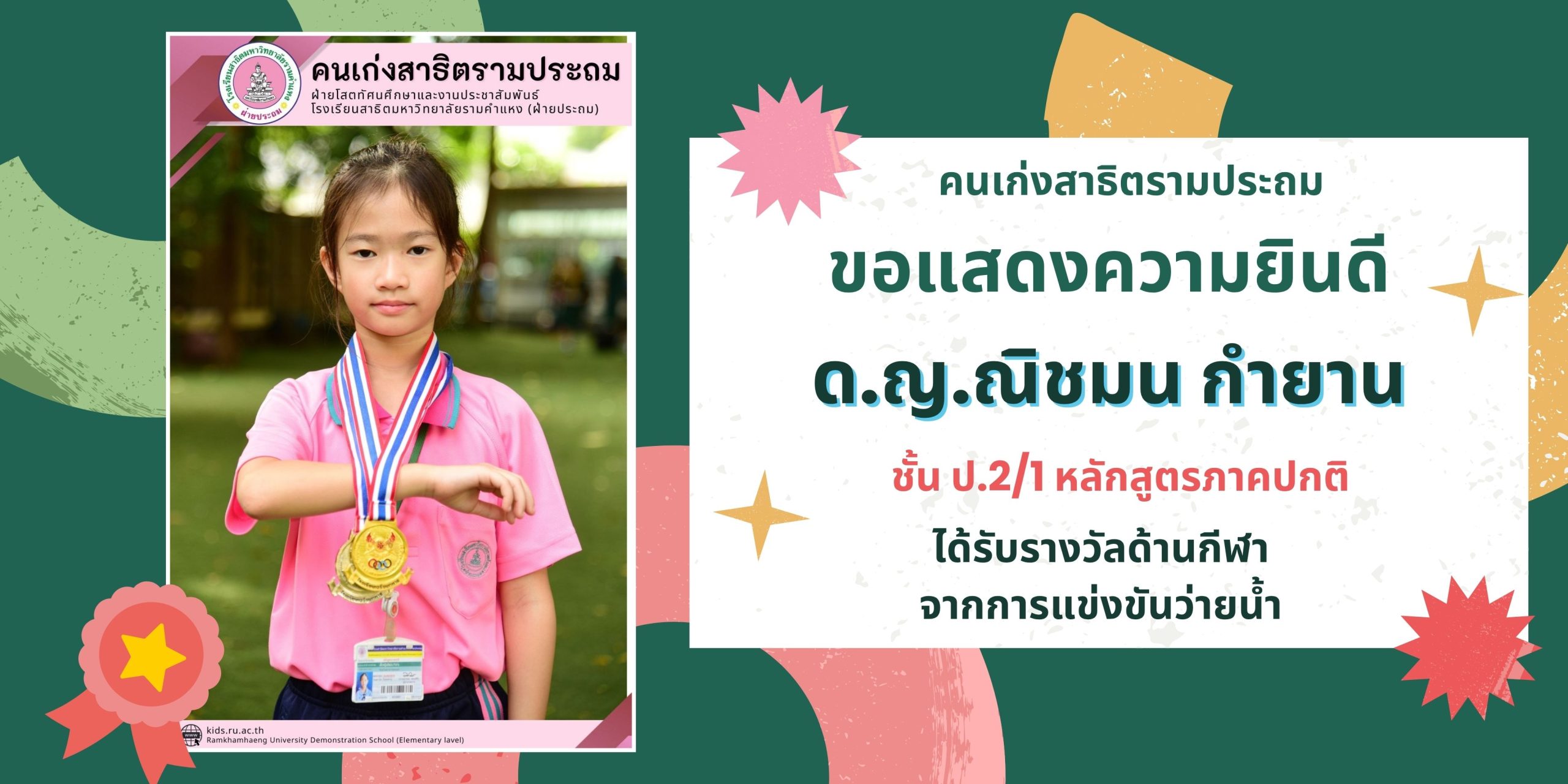 ได้รับรางวัลด้านกีฬา จากการแข่งขันว่ายน้ำ