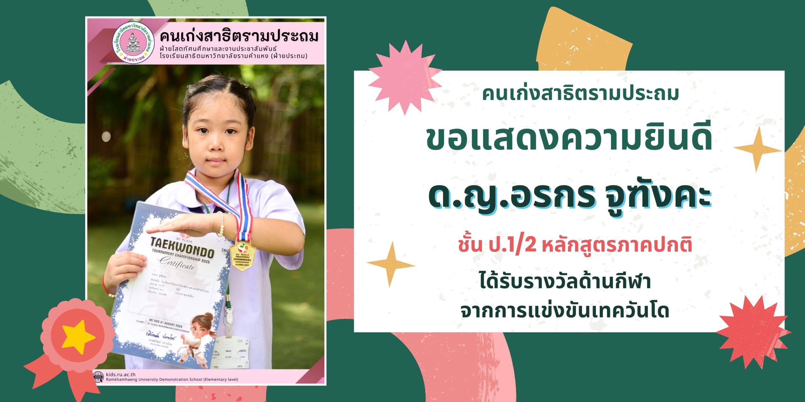 ได้รับรางวัลด้านกีฬา จากการแข่งขันเทควันโด