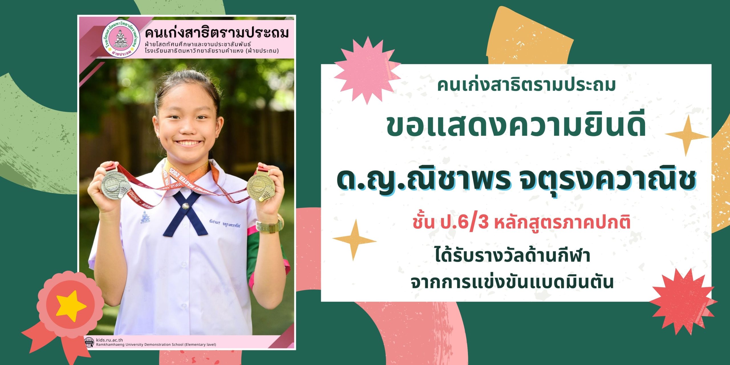 ด.ญ.ณิชาพร จตุรงควาณิช ชั้น ป.6/3 หลักสูตรภาคปกติ