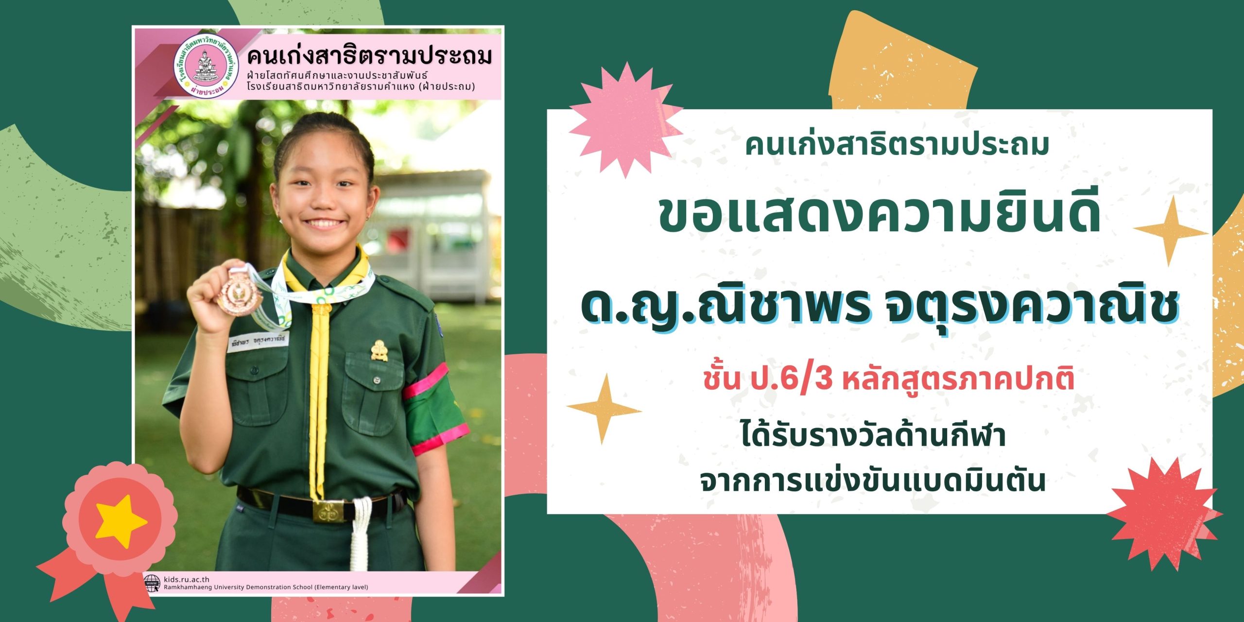 ด.ญ.ณิชาพร จตุรงควาณิช ชั้น ป.6/3 หลักสูตรภาคปกติ