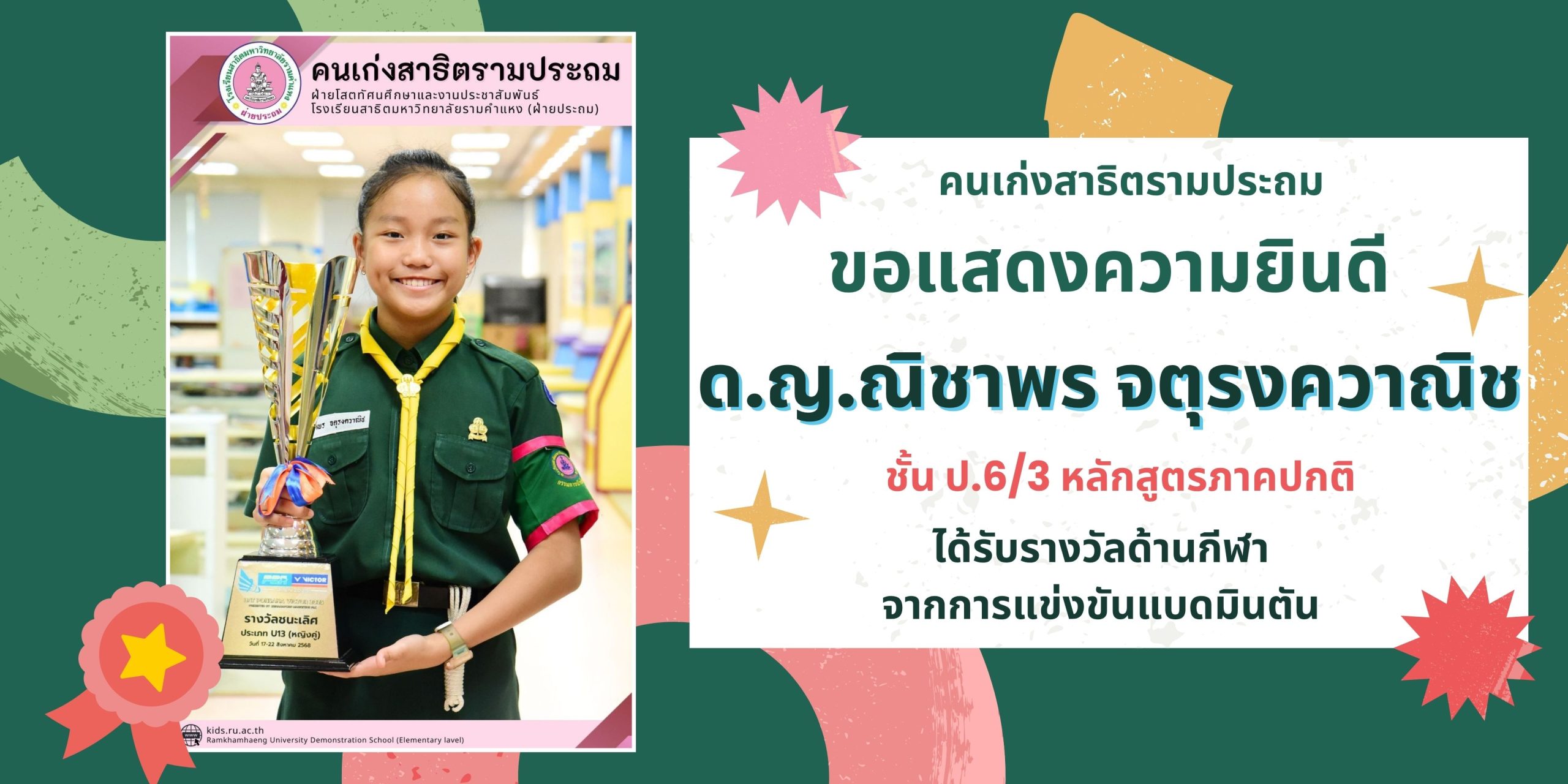 ด.ญ.ณิชาพร จตุรงควาณิช ชั้น ป.6/3 หลักสูตรภาคปกติ