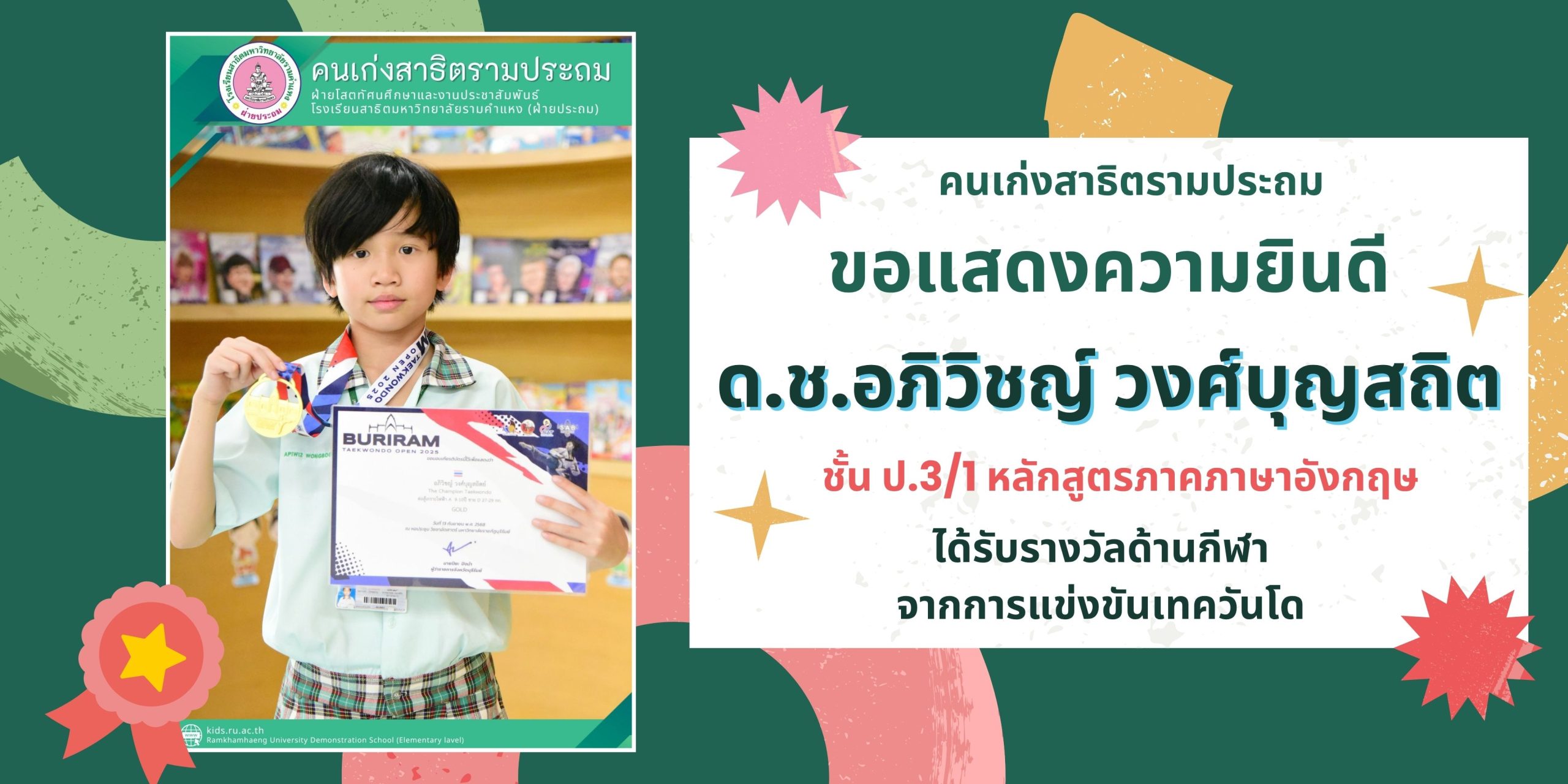 ด.ช.อภิวิชญ์ วงศ์บุญสถิต ชั้น ป.3/1 หลักสูตรภาคภาษาอังกฤษ