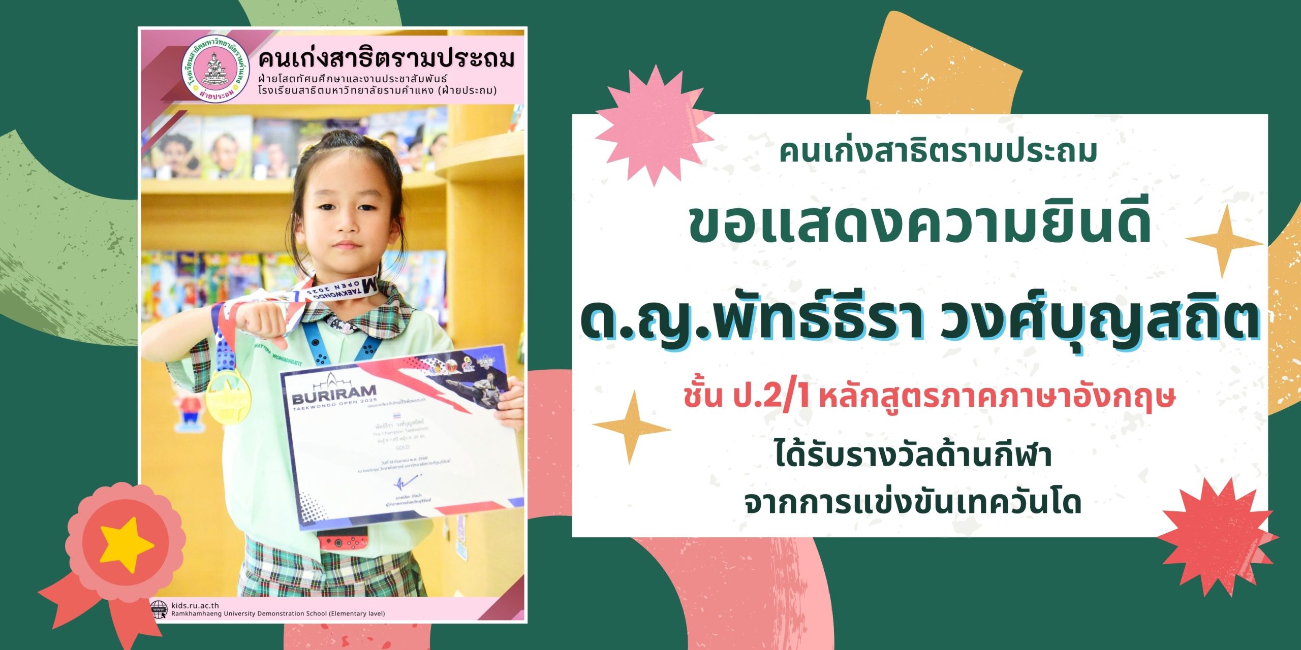 ด.ญ.พัทธ์ธีรา วงศ์บุญสถิต ชั้น ป.2/1 หลักสูตรภาคภาษาอังกฤษ