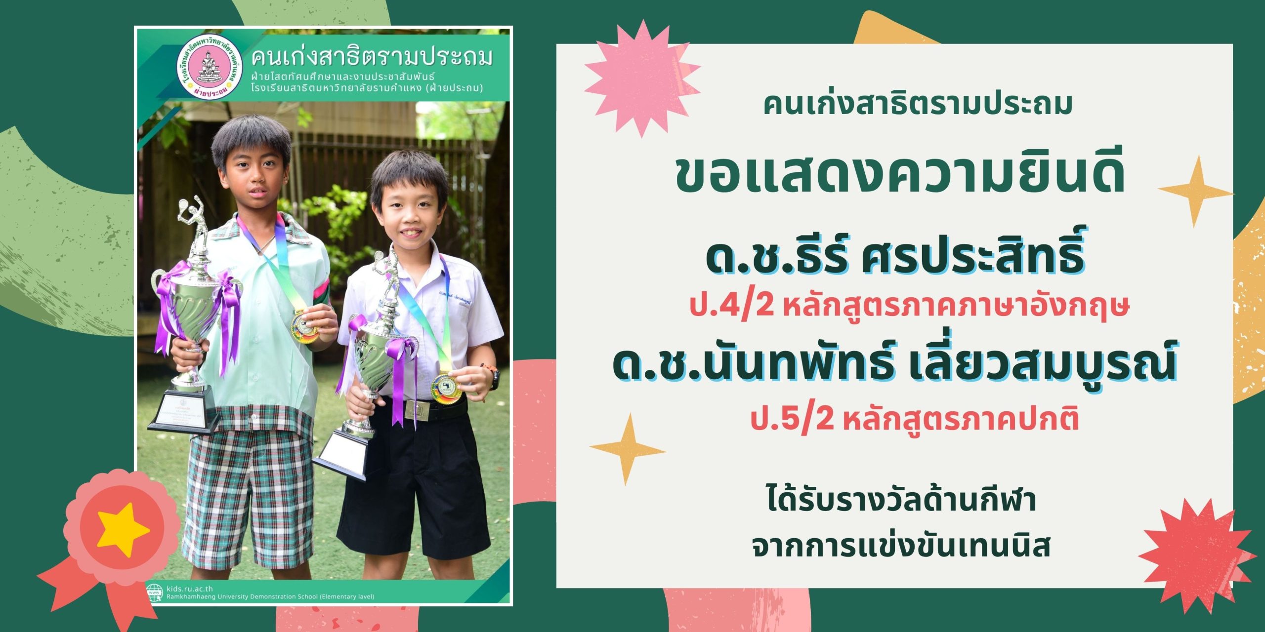 ได้รับรางวัลชนะเลิศ ประเภท ชายคู่ ระดับประถมศึกษา